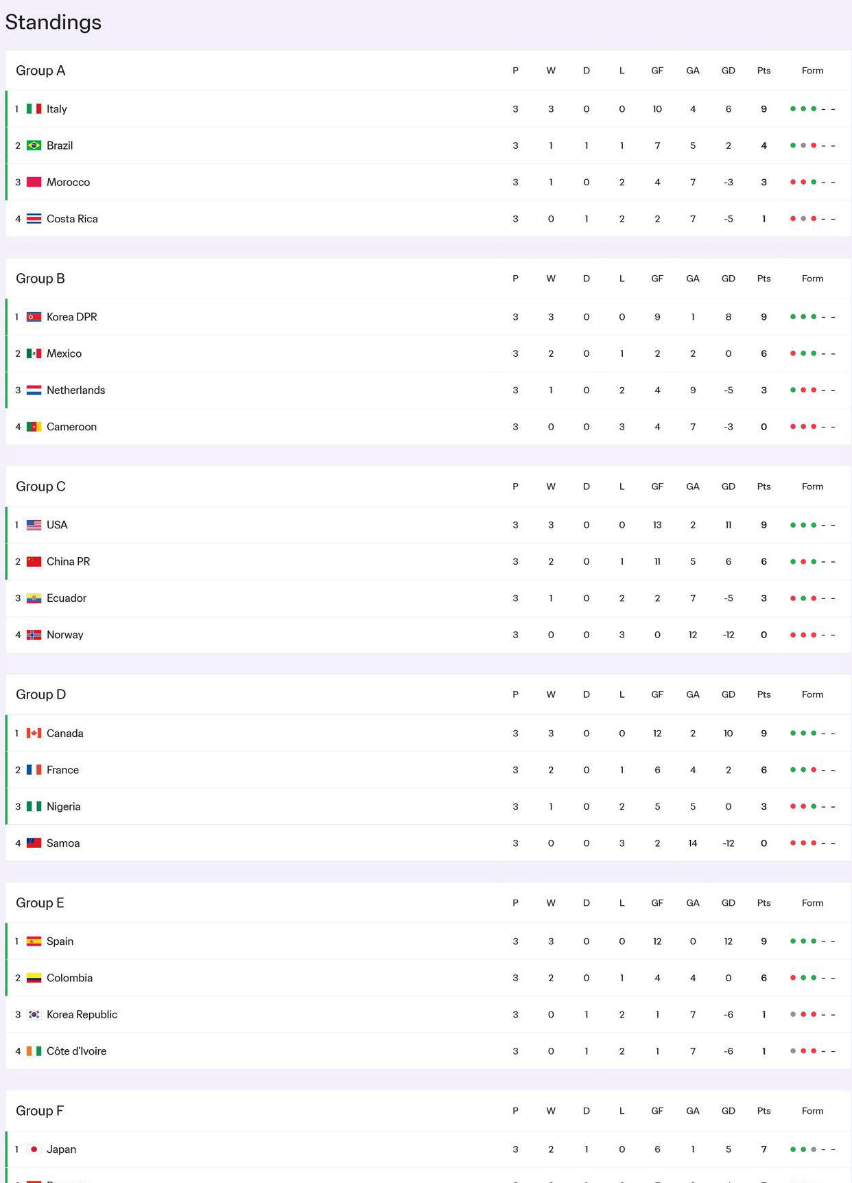 日本队虽未在末轮获胜,但凭借2胜1平的战绩成功名列小组头名,顺利晋级16强;中国队位居小组第2,朝鲜队则三战全胜。相比之下,韩国队艰难以1平2负的成绩出局,未能成为四个最佳第三名,使得亚洲球队略显遗憾。