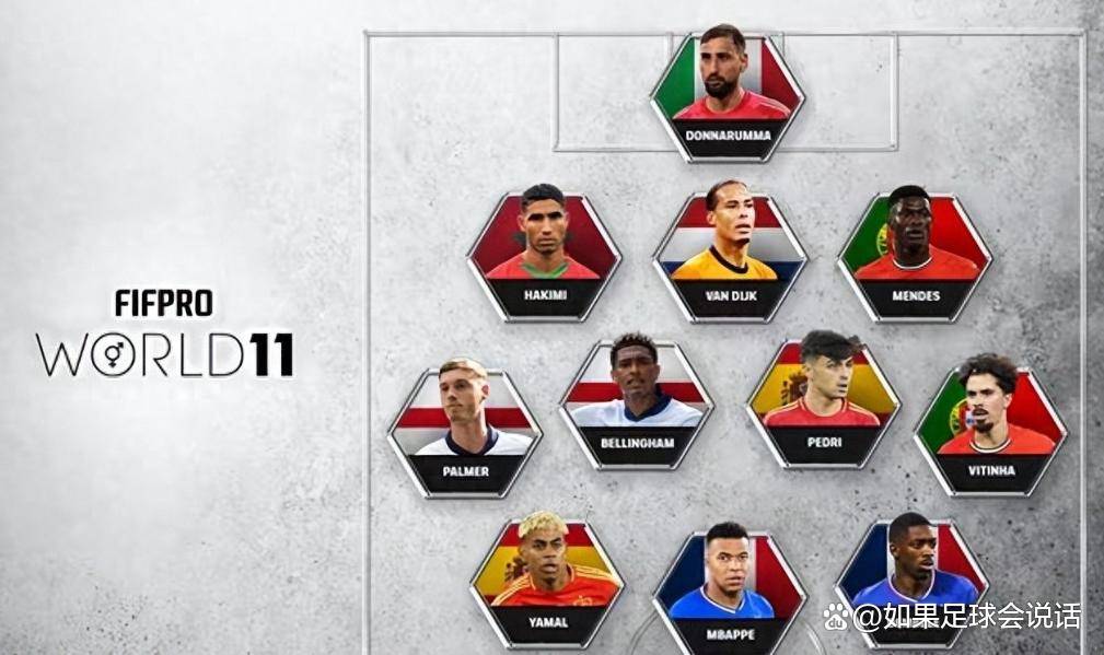 球员票选VS专家评选:谁更懂球?当金球奖还在纠结媒体和教练的偏好时,FIFPRO直接让踢球的人自己投票。这好比让厨师评选米其林,结果自然腥风血雨!看看这份名单:门将多纳鲁马稳如泰山,范戴克领衔后防,中场贝林厄姆、帕尔默、佩德里和维蒂尼亚组成“技术流棋盘”,前锋登贝莱、姆巴佩和亚马尔则像装了涡轮增压的超跑群。有球迷调侃:“这阵容打FIFA游戏能直接夺冠吧?”