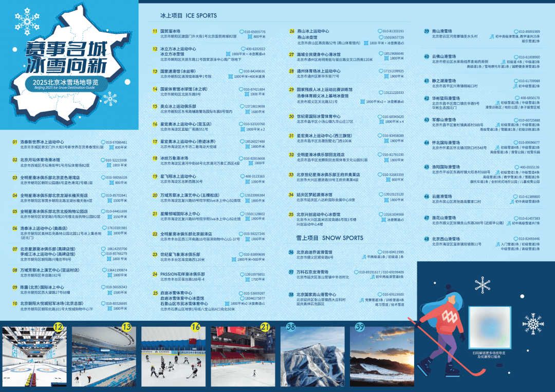 1、2025北京冰雪场地导览发布:重磅推出2025北京冰雪场地导览,导览汇集了北京48家知名冰场与雪场的详细信息,这份权威、便捷的冰雪指南,将极大方便市民游客查询与就近参与,轻松规划属于自己的冰雪之旅。