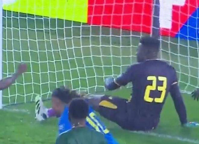 比赛的前90分钟,两队始终未能打破僵局,战成0-0平。比赛进行到第91分钟,民主刚果获得了一个角球,后卫姆巴贝成功破门。奥纳纳尝试用脚去拦截,但最终没能阻止球进入球网,他懊悔地坐在地上,看着对方疯狂庆祝。