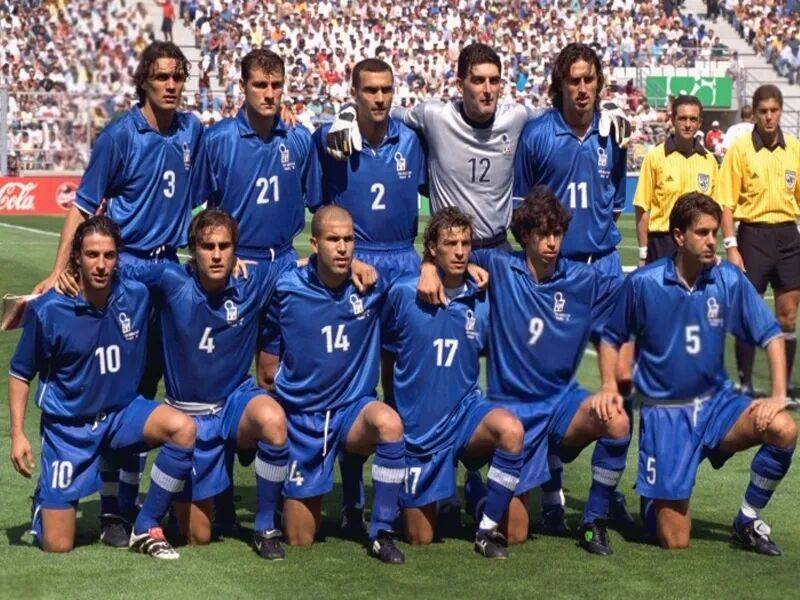 1998年世界杯16强,挪威一球小负意大利,维耶里打进全场唯一进球,这是挪威最后一场世界杯的比赛。看看当时的首发名单,意大利阵容相当鼎盛,那条钢铁一般的后防线,才是亚平宁足球真正的代表,不要忘了,替补席上还坐着巴乔、布冯和因扎吉等闪亮的明星。