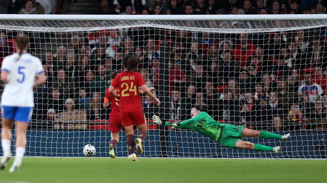 11月29日,中国队门将潘红艳(右)未能扑出英格兰队球员的射门。 新华社记者 李颖 摄 本场比赛之后,中国队将赴西班牙继续拉练,备战明年三月在澳大利亚举行的亚洲杯比赛。返回搜狐,查看更多