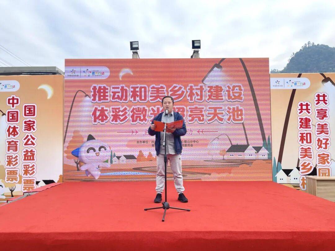 随后,四川体彩眉山分中心负责人系统阐释了中国体育彩票“来之于民、用之于民”的发行宗旨。他在讲话中介绍,体彩公益金不仅助力全民健身事业,更广泛投入到乡村振兴、社会保障等民生领域。他表示,眉山体彩始终以践行社会责任为己任,希望将公益的涓涓细流,汇聚成助力基层发展的磅礴力量,未来将持续关注乡村需求,为和美乡村建设注入更多温暖动能。