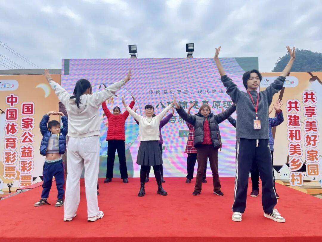 活动尾声,一场充满活力的八段锦集体教学将现场气氛再次点燃。在健身指导员的带领下,村民们舒展筋骨、吐纳呼吸,认真练习每一个动作。“跟着老师练八段锦特别舒服,身子骨都活动开了!今天不光锻炼了身体,还学到了不少有用知识,这活动真是办到我们心坎里去了!”村民王大妈在练习后笑容满面地说道。