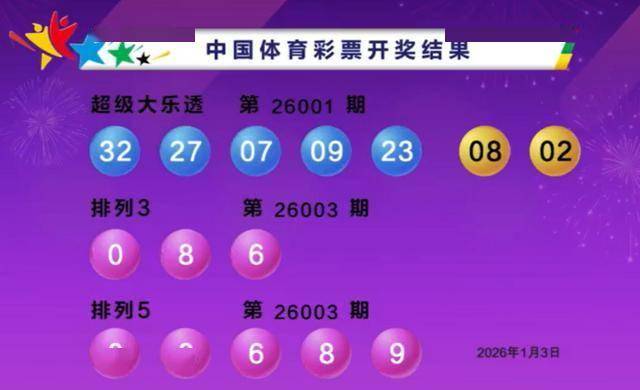 爱体育,爱体育官网,爱体育APP,爱体育APP下载,爱体育下载,爱体育网页版,爱体育电竞,爱体育百家乐,爱体育百家乐,爱体育真人,CBA,CBA赛程表,CBA直播,NBA,NBA直播,UFC格斗【开奖回顾】1月3日,开出的奖项有体彩的26001期大乐透,26003期排列三/五,以及福彩的第26003快乐8,26003期福彩3D。