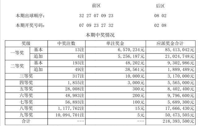 本期一等奖出自:内蒙古(基本2注追加1注)、吉林(基本1注)、江苏(基本2注)、浙江(基本1注)、安徽(基本1注)、福建(基本1注)、湖北(基本1注)、云南(基本1注)、西藏(基本3注追加3注)。