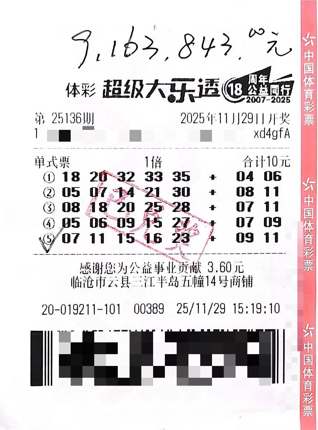 这种平和的心态,让他甚至忘记了及时核对彩票。直到2025年12月30日,他再次前往同一家网点购买彩票时,才得知这里在一个多月前中出了一注一等奖。